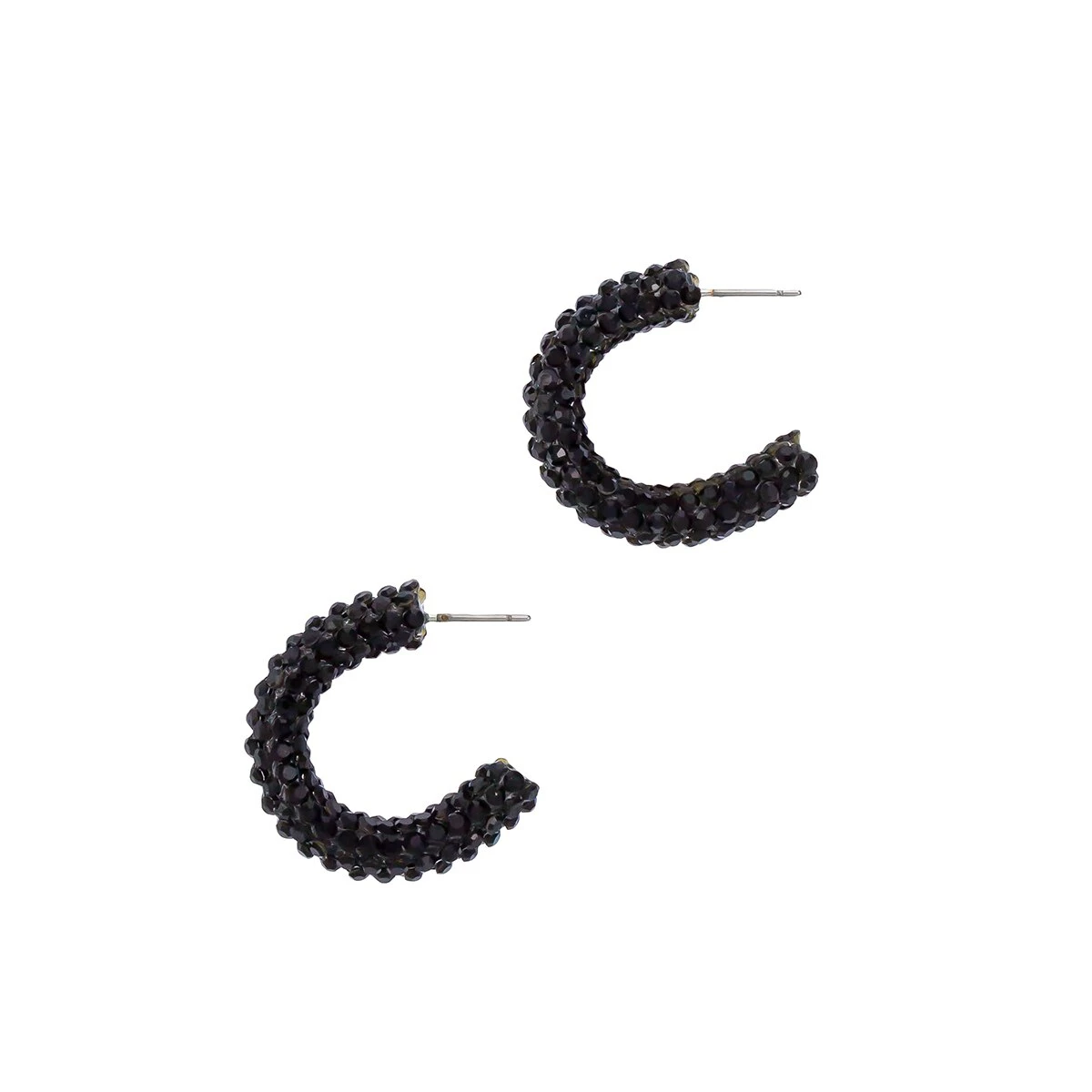 The Ashley Cooper™ 1-inch small jet pave stone post hoop earrings will become a staple in your wardrobe.