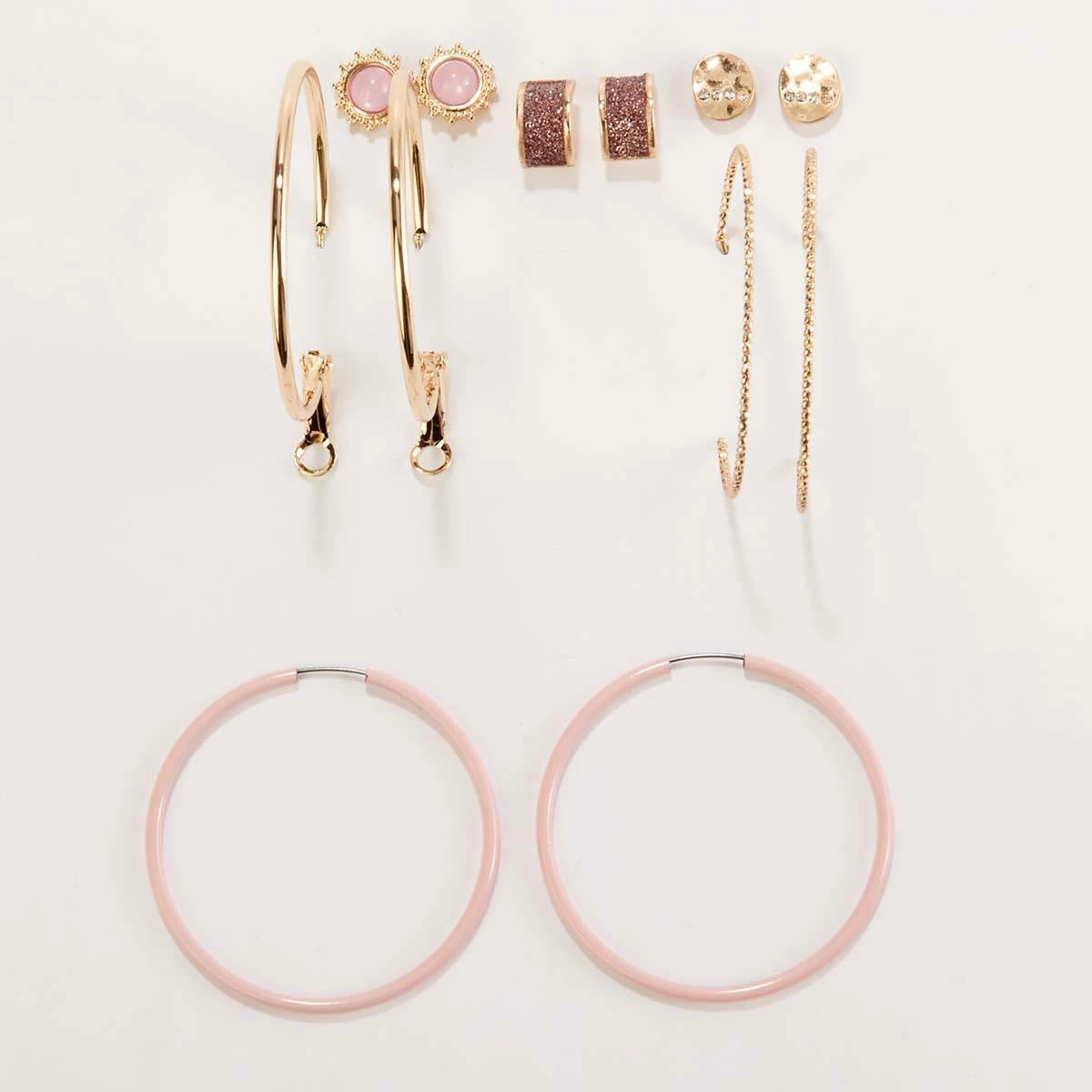 This Ashley Cooper™ six-piece gold and pink post and hoop earrings set will add a sophisticated touch to your look.