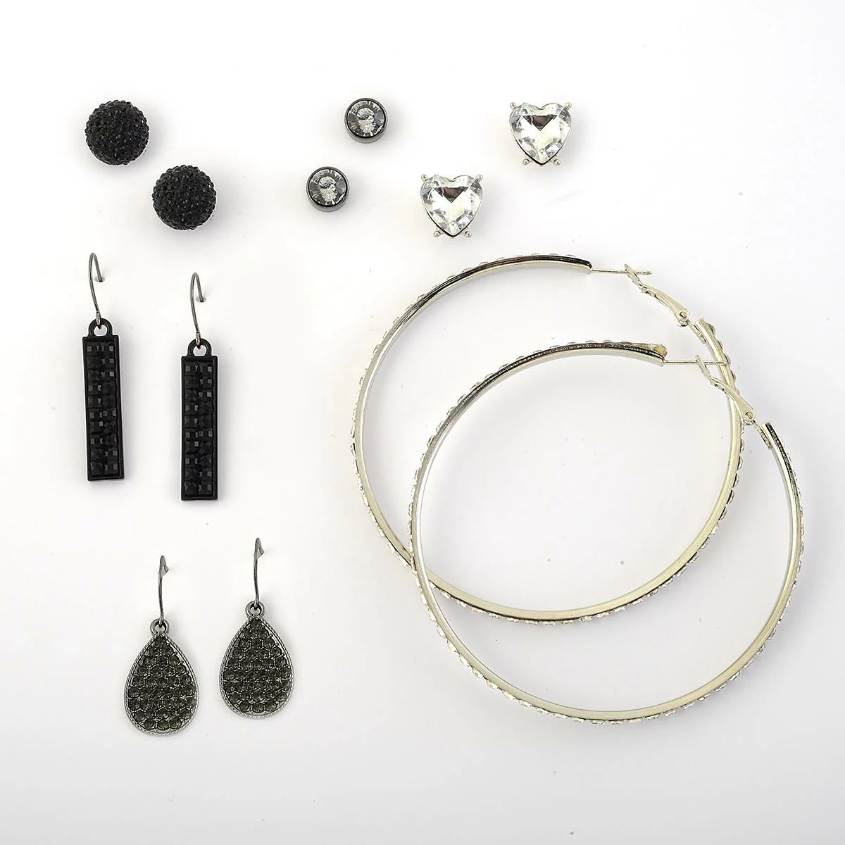 You will love the versatility of the Ashley Cooper™ 6-pair silver plated post and hoop earrings set, including teardrops, hoops, and hearts with crystal stones.