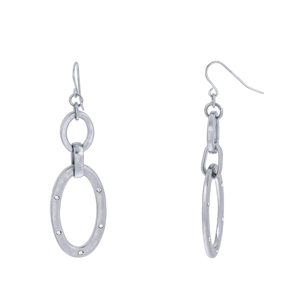Accessorize your look with the Ashley Cooper™ 2.5-inch silver-tone open double link earrings with crystal stone accents on fish hooks.