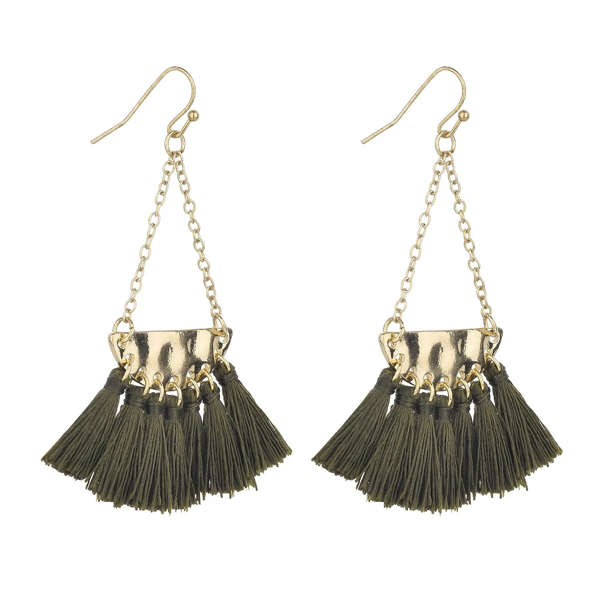 The Ashley Cooper™ gold and olive green tassel earrings will stand out among the rest.