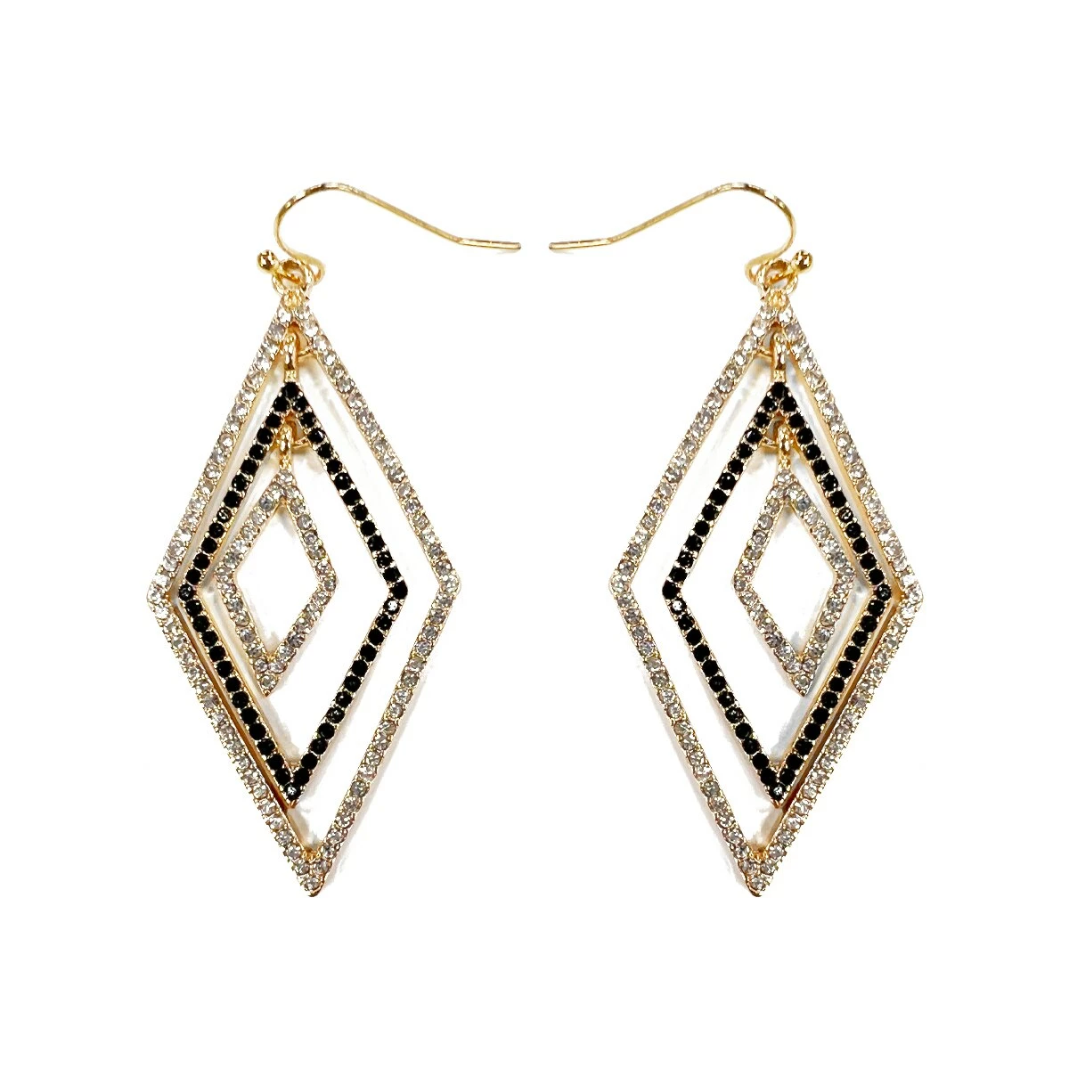Add some sparkle to your day with thisAshley Cooper™ 2-inch gold fishhook drop earrings with clear and jet pave details.