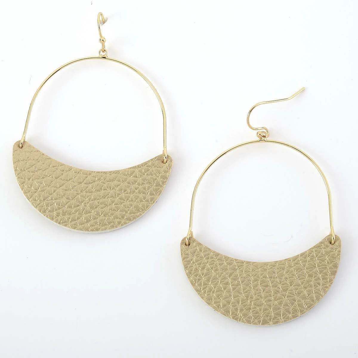 Feel infinitely beautiful in the fabulous design of the Ashley Cooper™ gold leather crescent half hoop earrings.