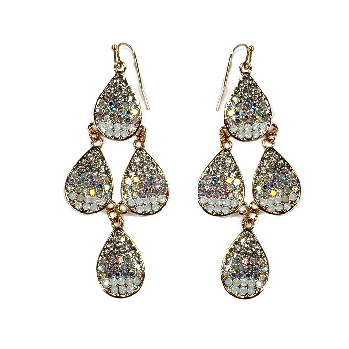 Add some sparkle to your day with this Ashley Cooper™ 2.5-inch gold long chandelier earrings with clear and AB glass stone drops.