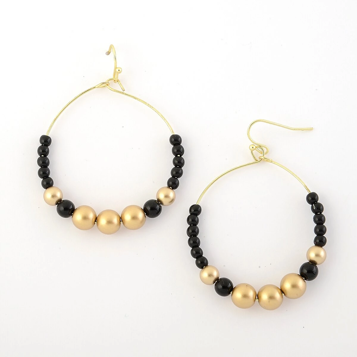 Make a statement with the fabulous Ashley Cooper™ gold plated fish hook hoop earrings with CCB jet and gold beads.