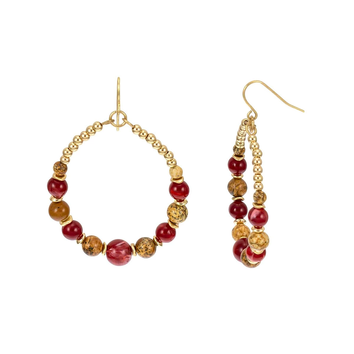 Accent your ensemble with the Ashley Cooper™ gold-tone berry & neutral beaded hoop earrings.