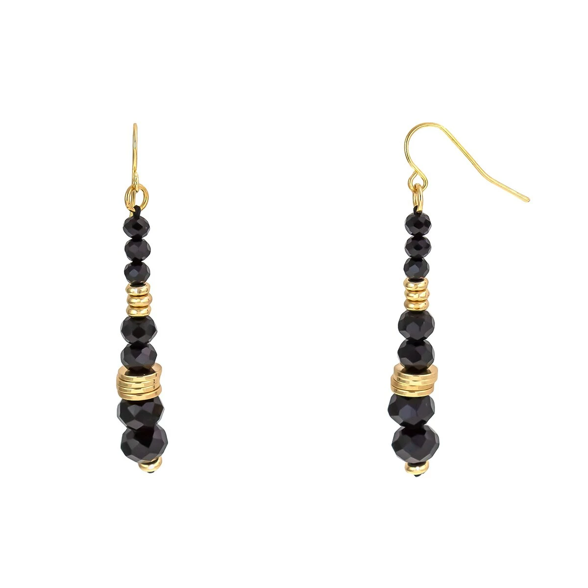 Add a modern and captivating look to your style with the Ashley Cooper™ 2.5-inch gold-tone linear jet beaded earrings on fish hooks.