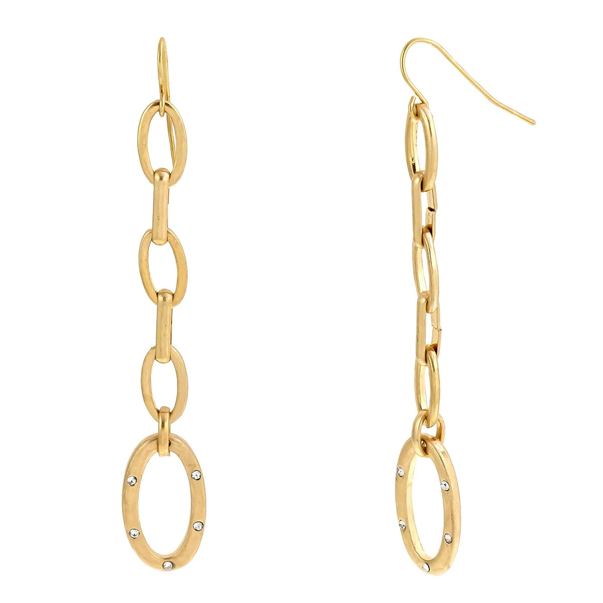 With the Ashley Cooper™ 3.1-inch gold-tone linear open link drop earrings with crystal stone accents on fish hooks, you will stand out among the rest.