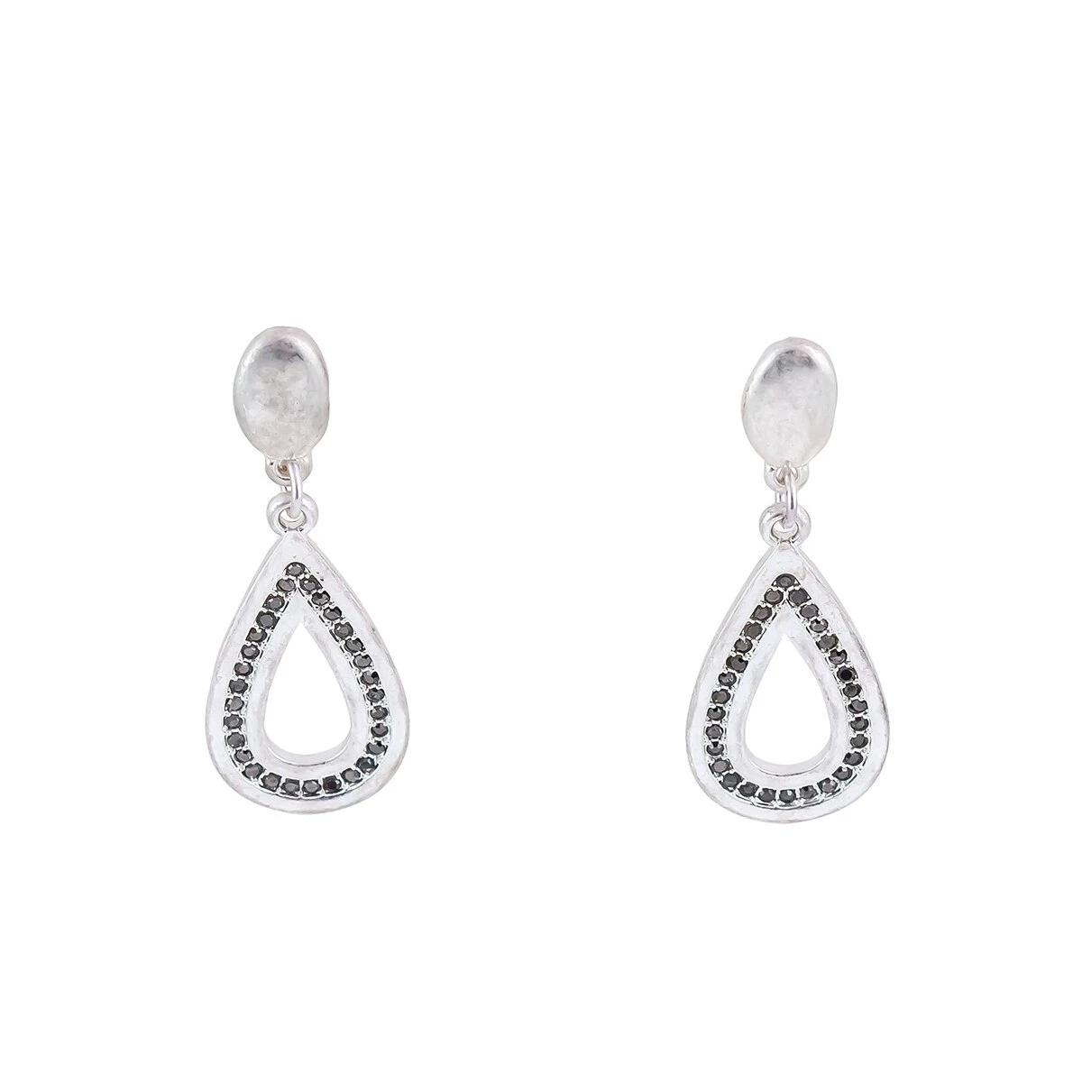 Add a chic finish to your ensemble with the charming Ashley Cooper™ 1.6-inch silver-tone post-top earrings with open teardrop with hematite stone accented inner frame.