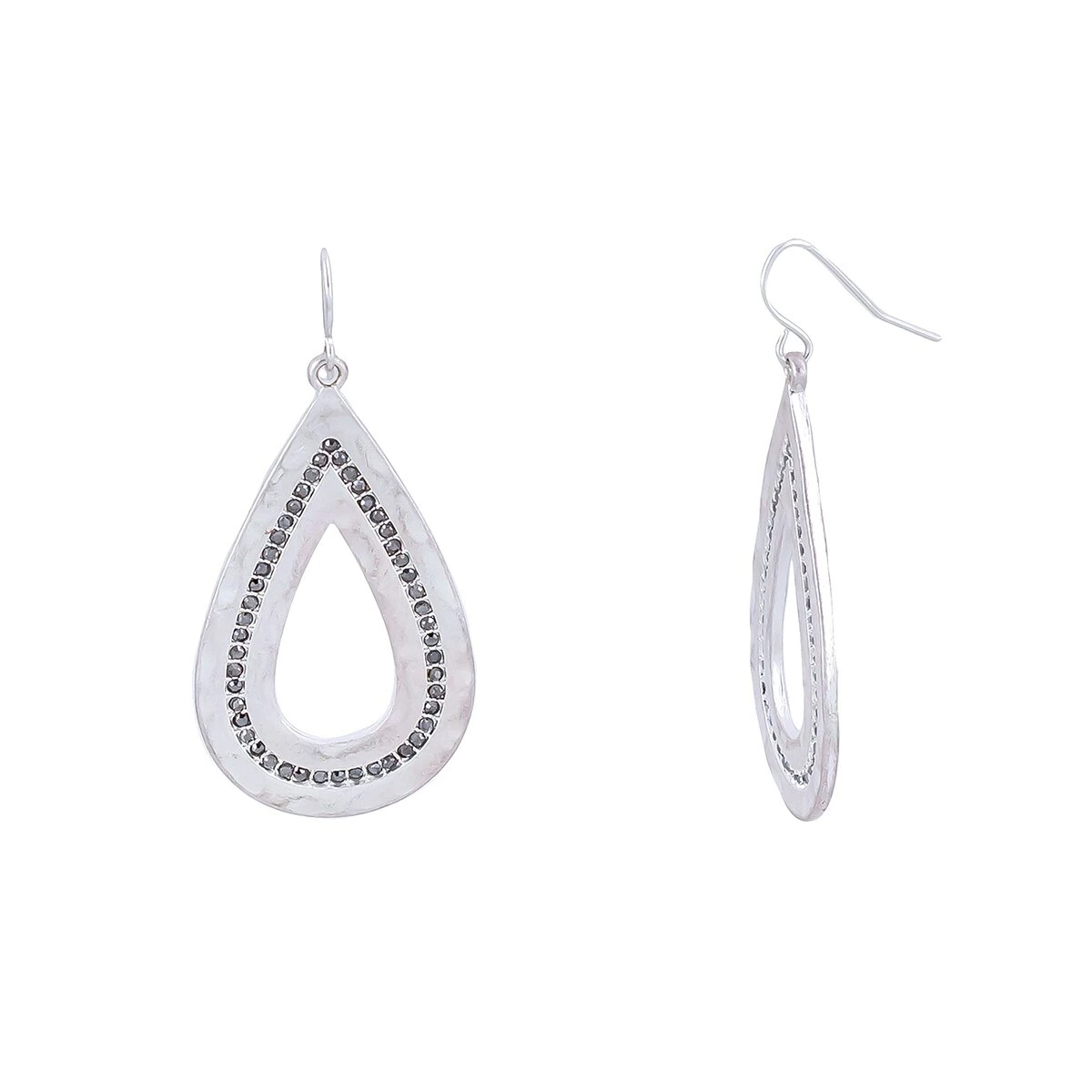 Refresh your jewelry collection with the unique style of the Ashley Cooper™ 2.1-inch silver-tone open teardrop earrings with hematite stone accented inner frames on fish hooks.