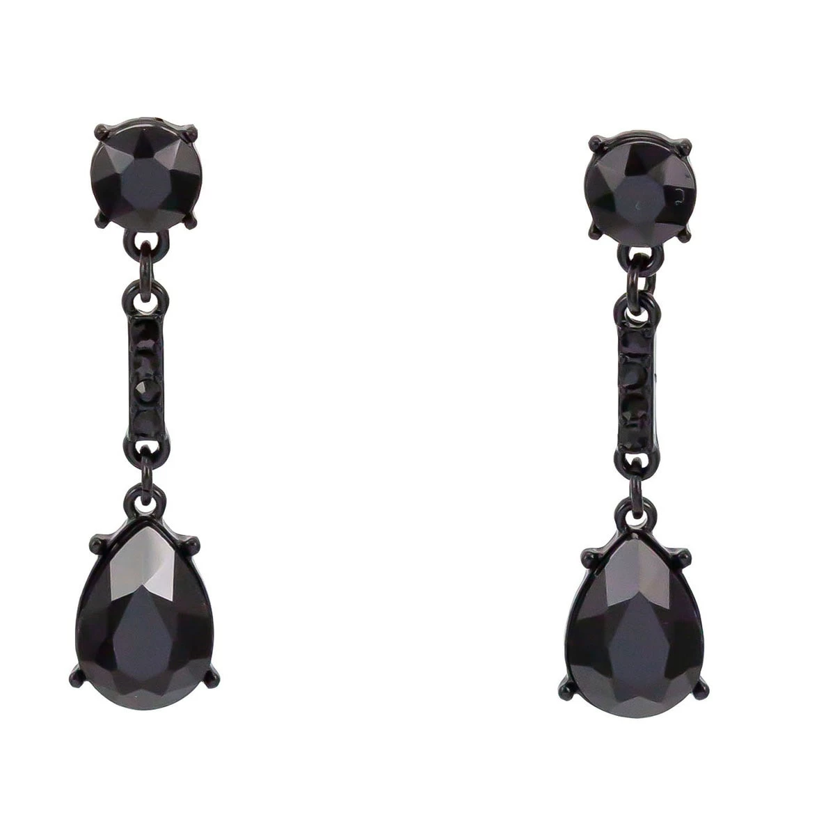 Elevate your look with the Ashley Cooper™ 1.7-inch jet stone post earrings with linear stone drop and jet teardrop.