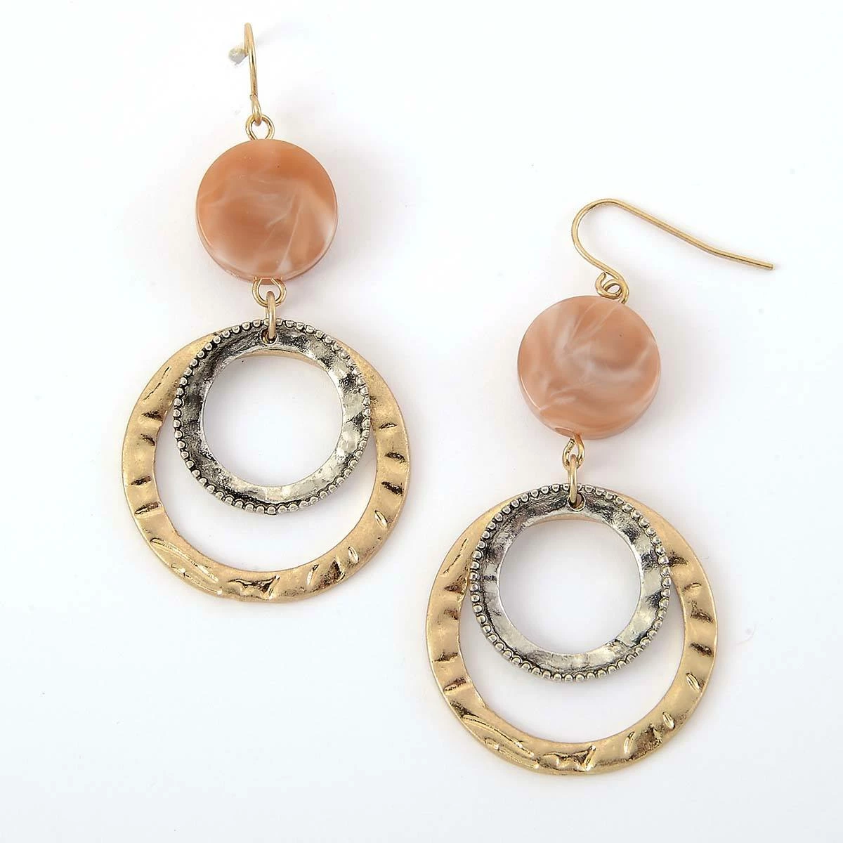Show off your style with the Ashley Cooper™ neutral resin with gold and silver circle drop earrings.