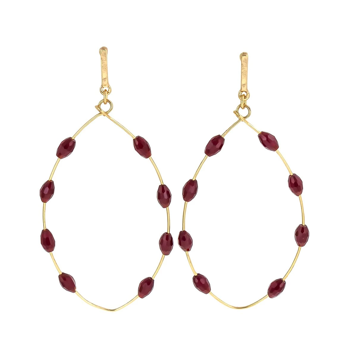 Dress up your ensemble with the unique appeal of the Ashley Cooper™ 2.5-inch gold-tone post top earrings with open oval and red bead stations.