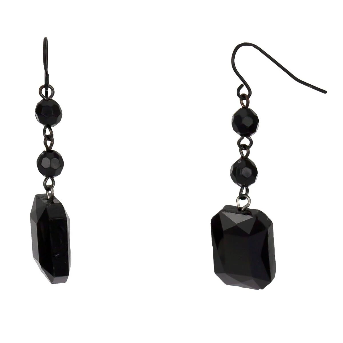 Refresh your jewelry collection with the beautiful style of the Ashley Cooper™ 2-inch triple-linked jet bead drop earrings with jet rectangular bead on fish hooks.