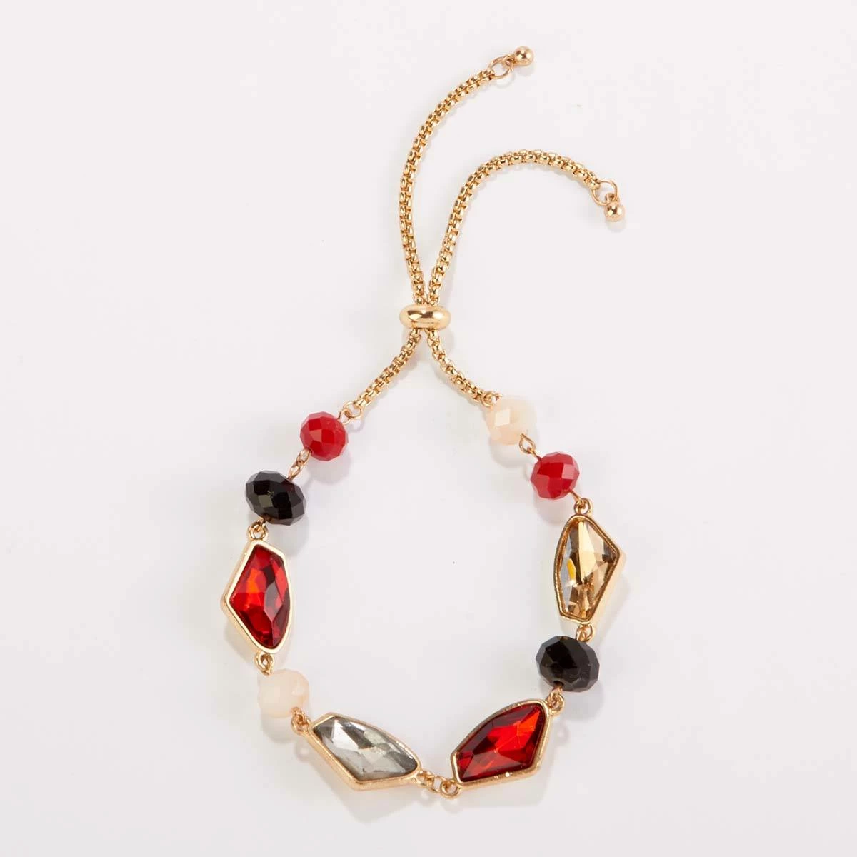 add a pop of color to your outfit with the Ashley Cooper™ red, black, and champagne color glass beaded adjustable bracelet.