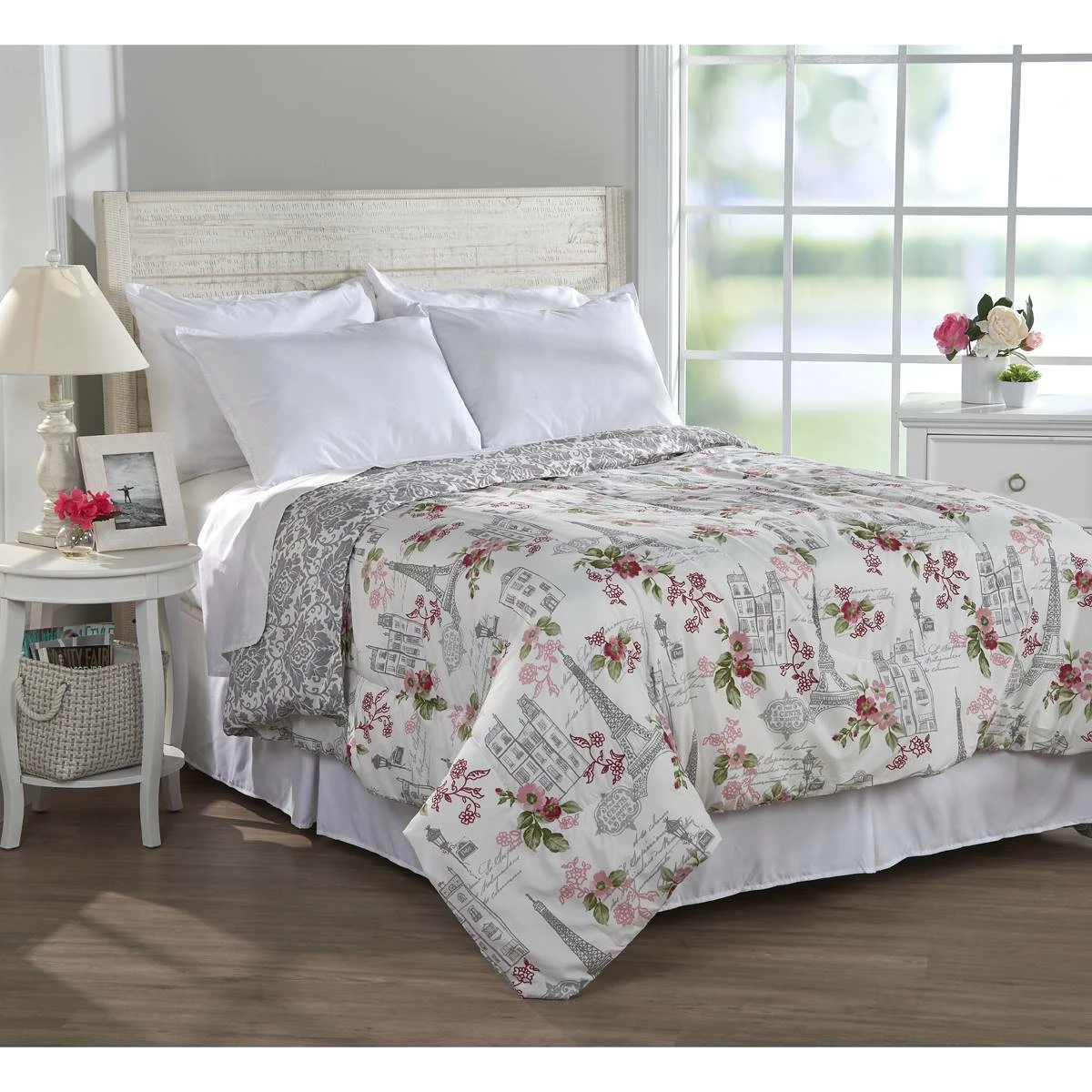 Evoke memories of beautiful France with this Ashley Cooper™ Paris collective print reversible comforter featuring images of the Eiffel Tower, French architecture and script, flowers, and a local postmark.