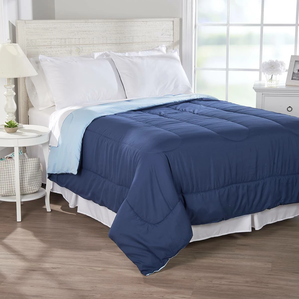 Bring casual comfort to your bedroom with this Ashley Cooper™ comforter, available in trendy colors. The reversible comforter is crafted from soft, smooth fabric with just the right amount of hypoallergenic down alternative fill to keep you comfortable all year long. The end-to-end sewn-through construction keeps the fill evenly distributed throughout the comforter.