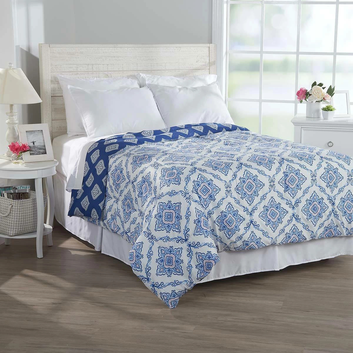 This Ashley Cooper™ tile medallion print reversible comforter features a beautiful medallion print in blue shades on a white background, making for a striking and easy-to-switch-up look that’s perfect for any bedroom decor.