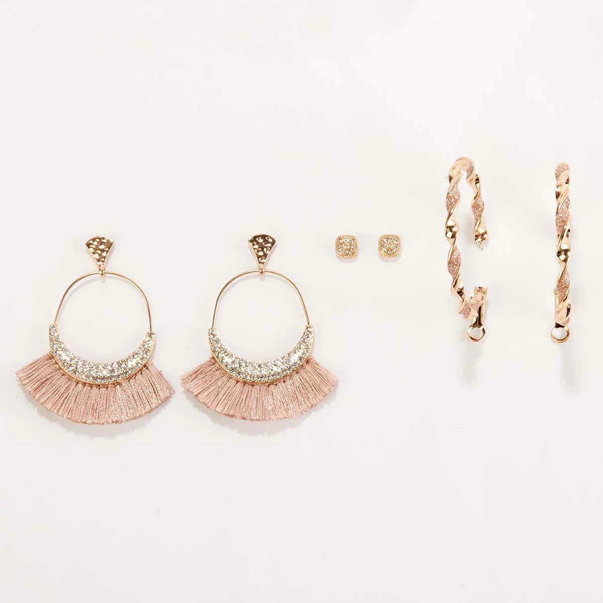 This Ashley Cooper™ pink and gold trio set of earrings is the perfect addition to your jewelry collection.