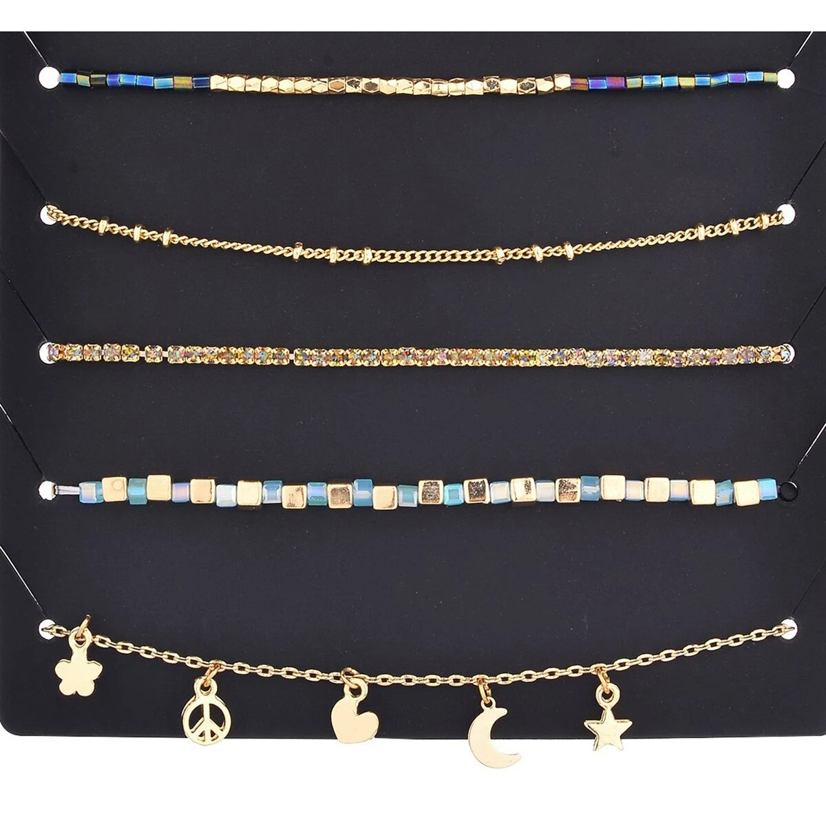Accent your ensemble with the Ashley by Ashley Cooper™ 5-piece gold and blue charm arm candy bracelet set.