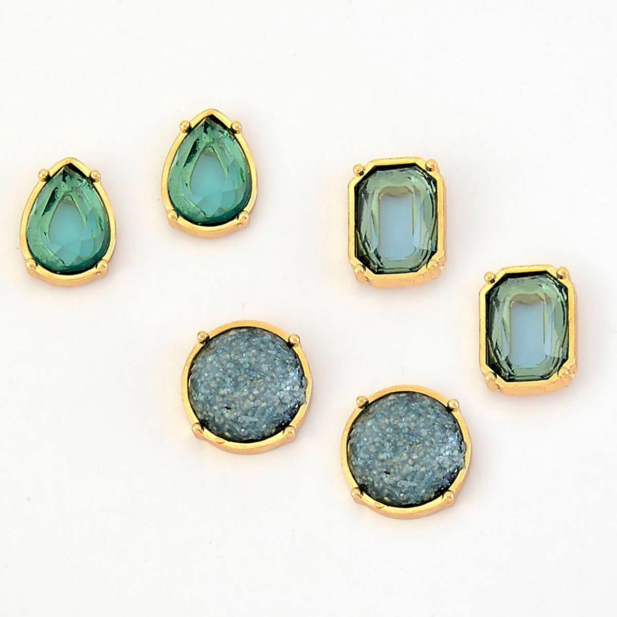 Dress to impress with this gold-tone Ashley Cooper™ trio of shades of blue geometric studs.
