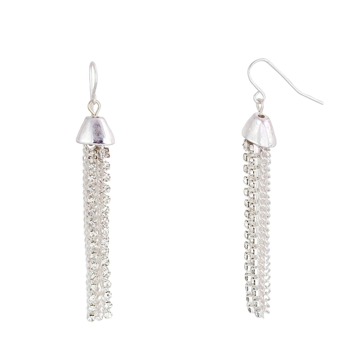 You are sure to adore the stylish look of the Ashley Cooper™ 2.6-inch silver-tone rhinestone chain tassel earrings on a fish hook.