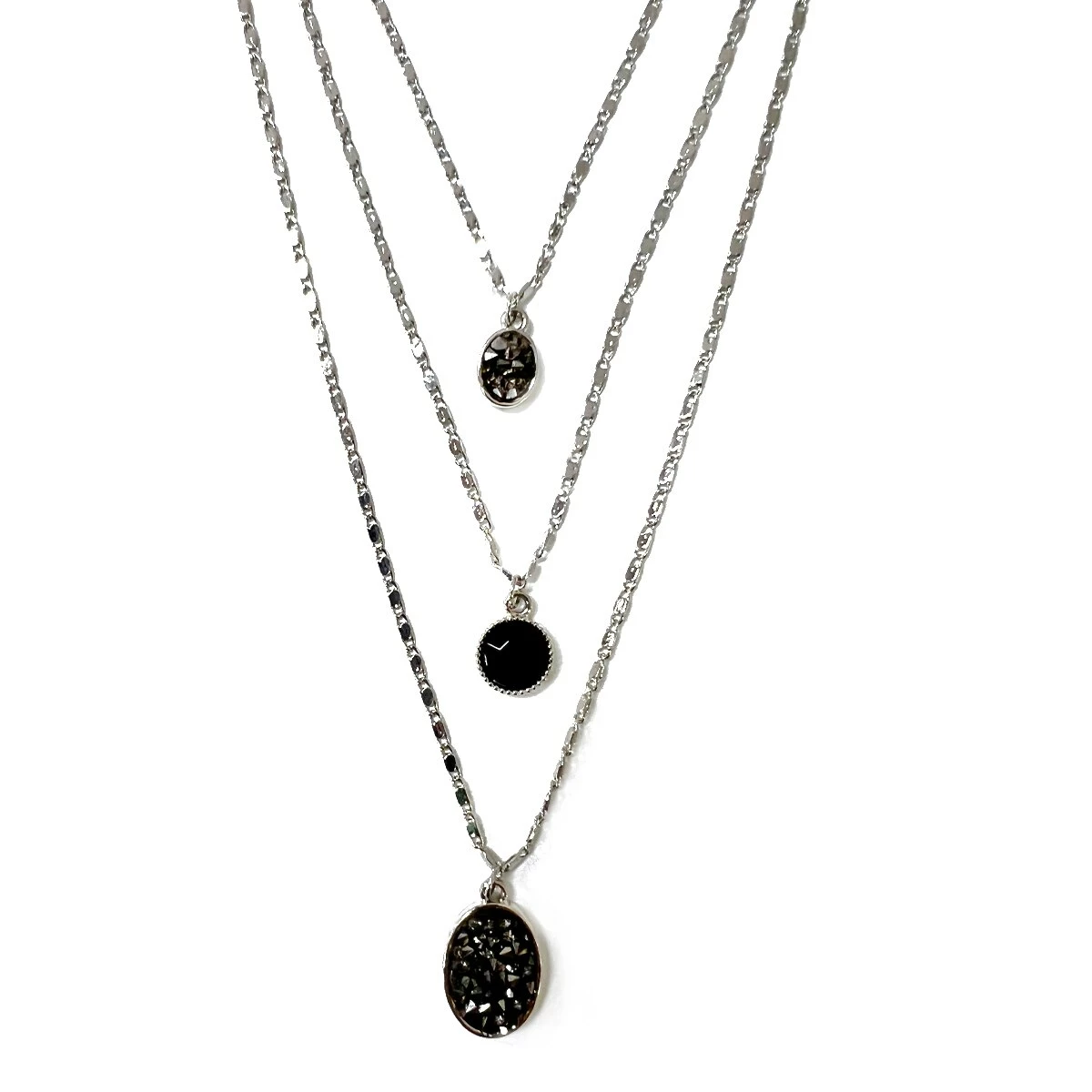 Feel infinitely beautiful in the fabulous design of the Ashley Cooper™ 3 row drop necklace with jet and hematite drops.