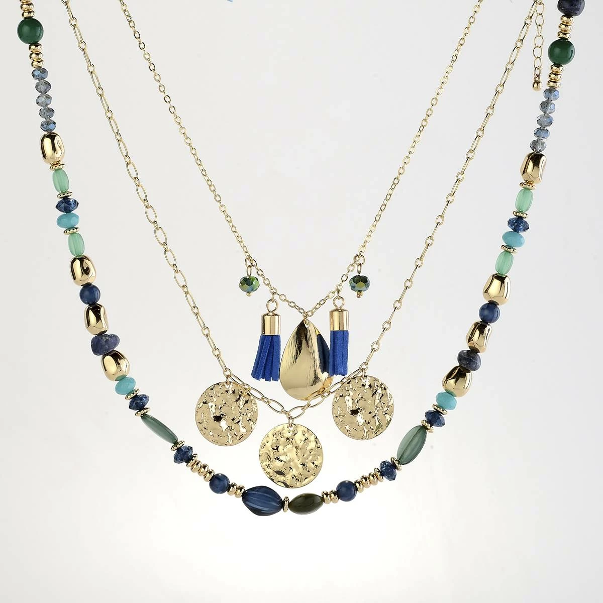 A trio of mixed colorful beads, chain, and medallions style this effortlessly cool Ashley Cooper™ layered necklace.