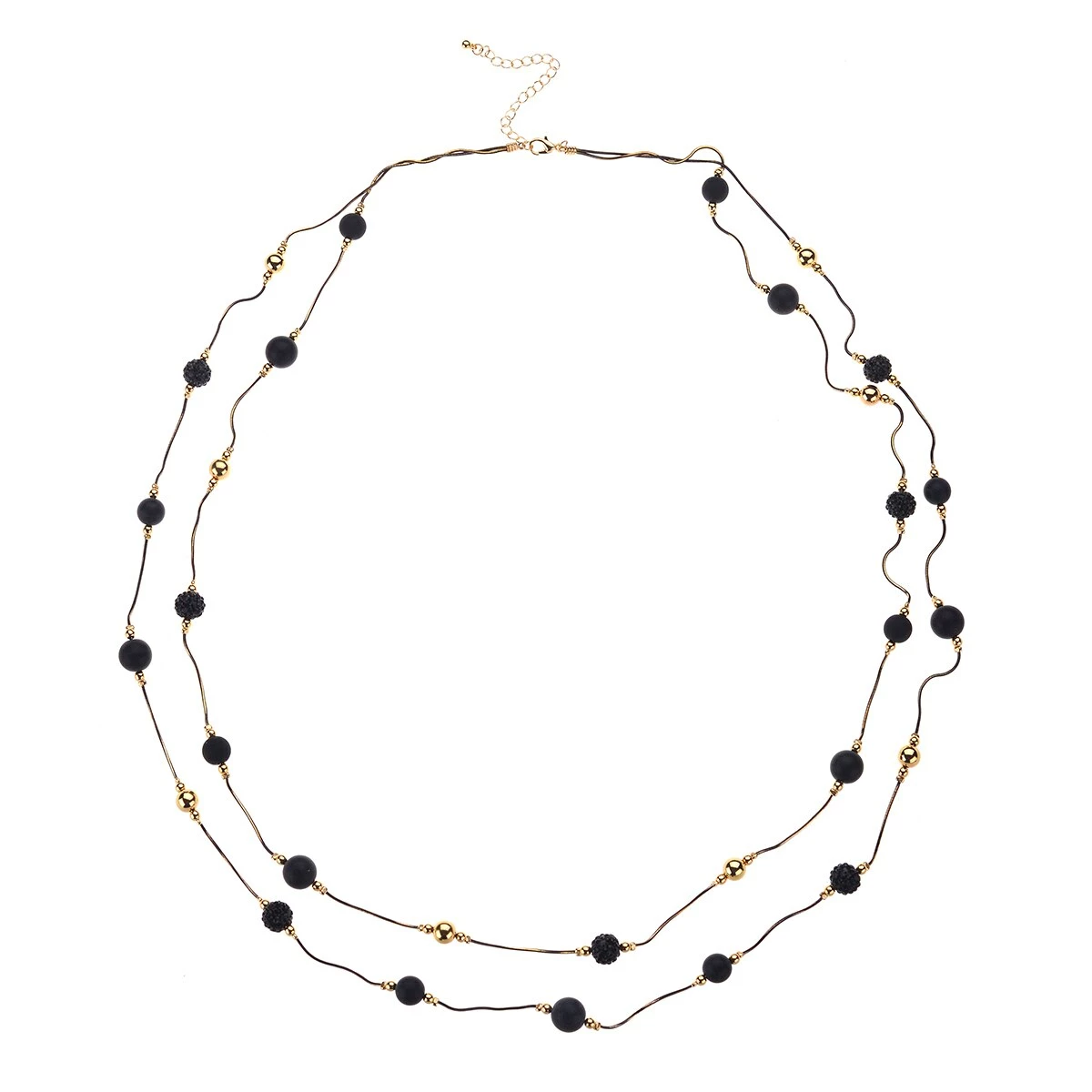 You are sure to adore the stylish look of the Ashley Cooper™ double row black and gold chain break necklace.