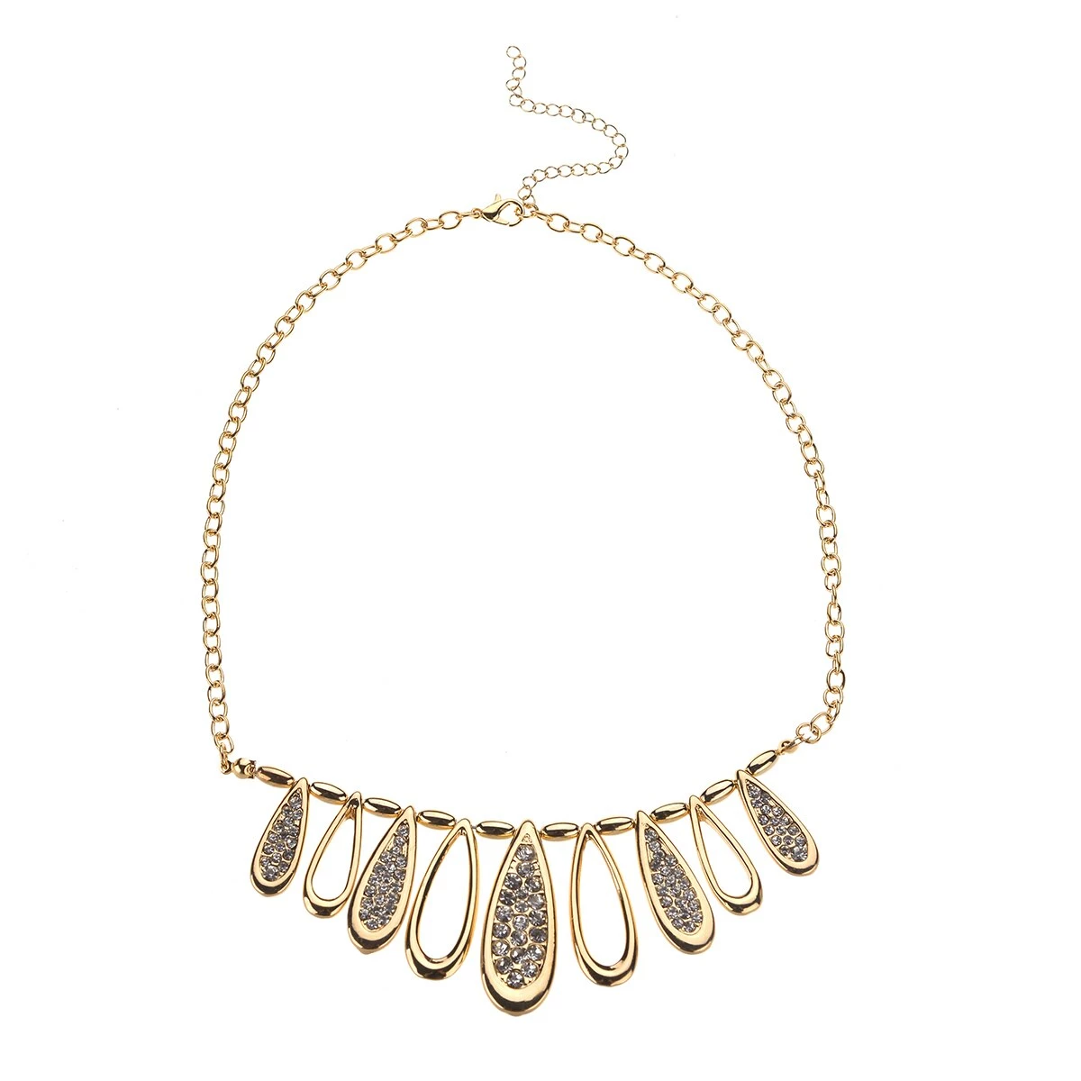 Add some sparkle to your day with the Ashley Cooper™ gold and rhinestone statement bib necklace.