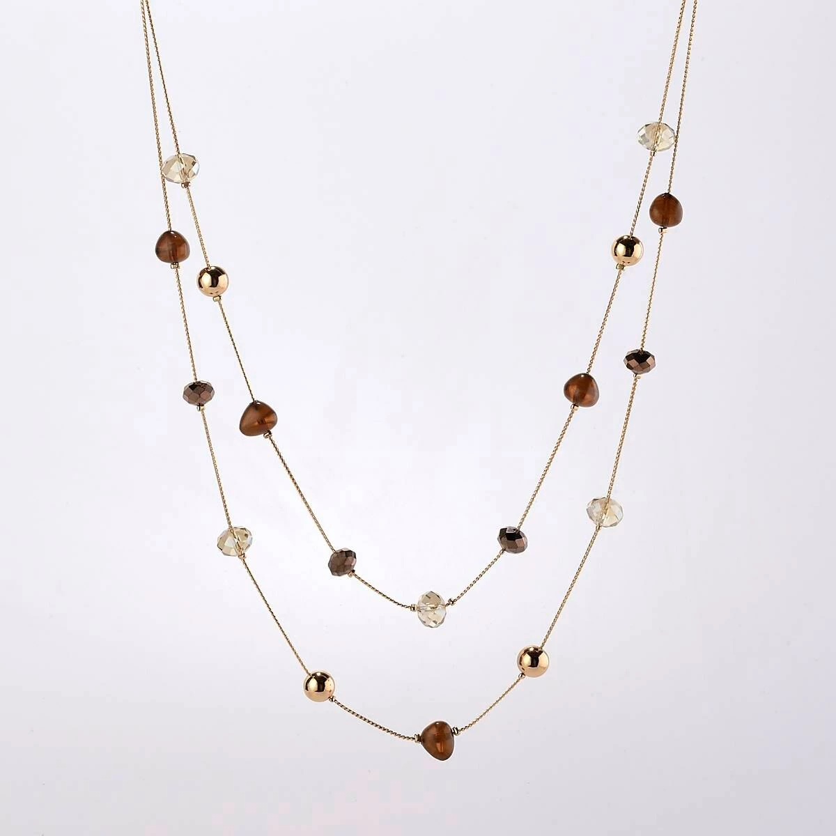The Ashley Cooper™ gold, brown, and crystal beaded 2-row necklace will be the perfect choice to dress up your everyday style.