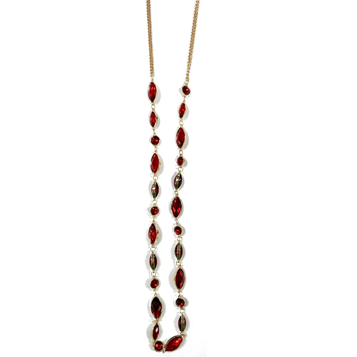 Step out in eye-catching style when you wear the Ashley Cooper™ gold necklace with red acrylic channel bead details.