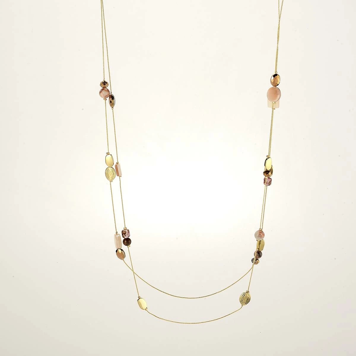Update your everyday collection with this Ashley Cooper™ mauve and gold-tone beaded 2-row station long illusion necklace.