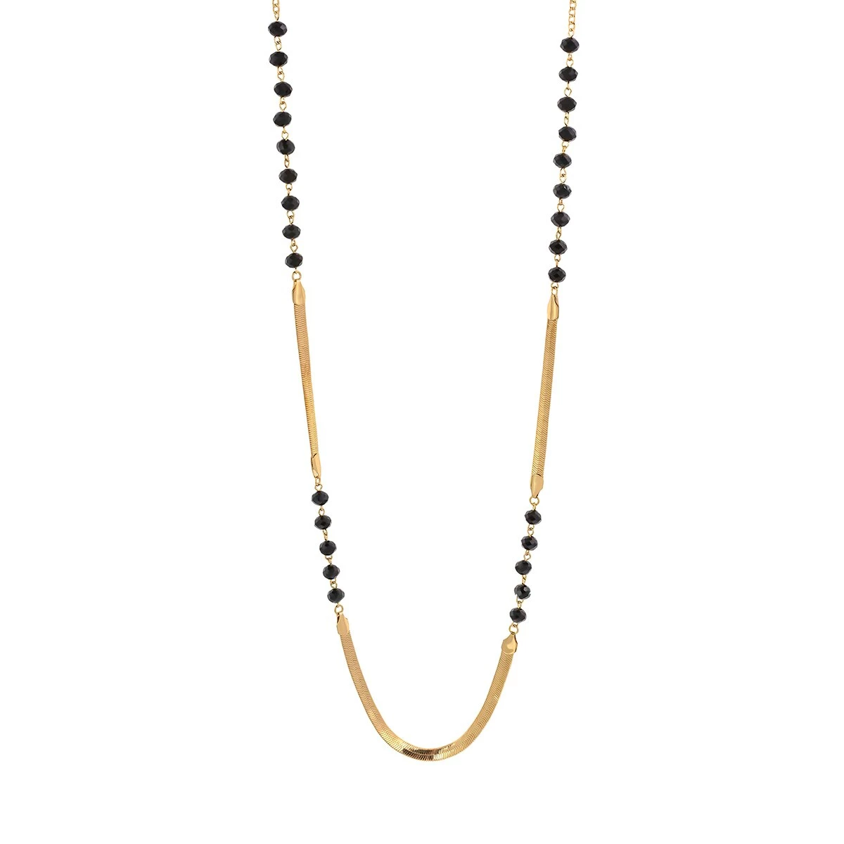 Step out in eye-catching style with the Ashley Cooper™ gold-tone long herringbone chain necklace with jet bead stations. The necklace measures 34 inches with a 3-inch extender.