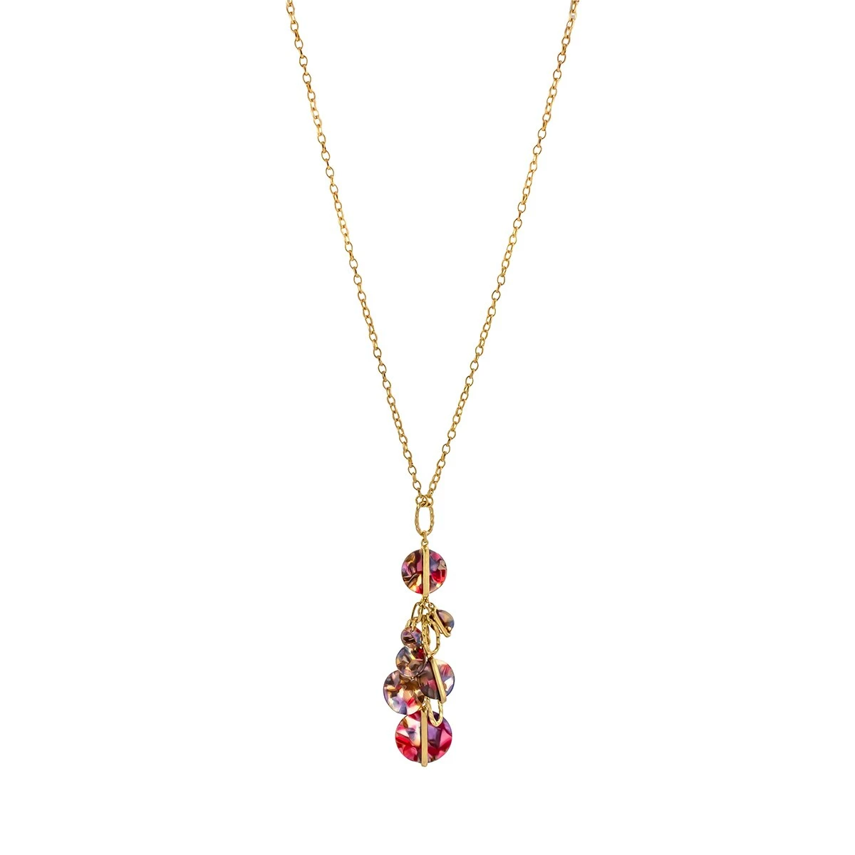 The Ashley Cooper™ long chain necklace features berry and multi-color lucite shaky drops. The necklace measures 30 inches with a 3-inch extender.