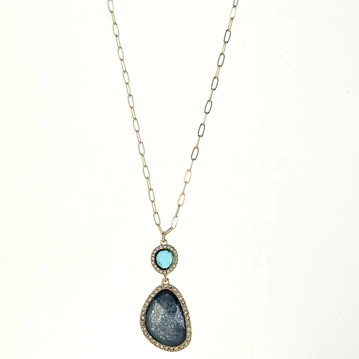 Complement your outfit with this stunning Ashley Cooper™ blue and gold-tone marble with a crystal accent pendant necklace.
