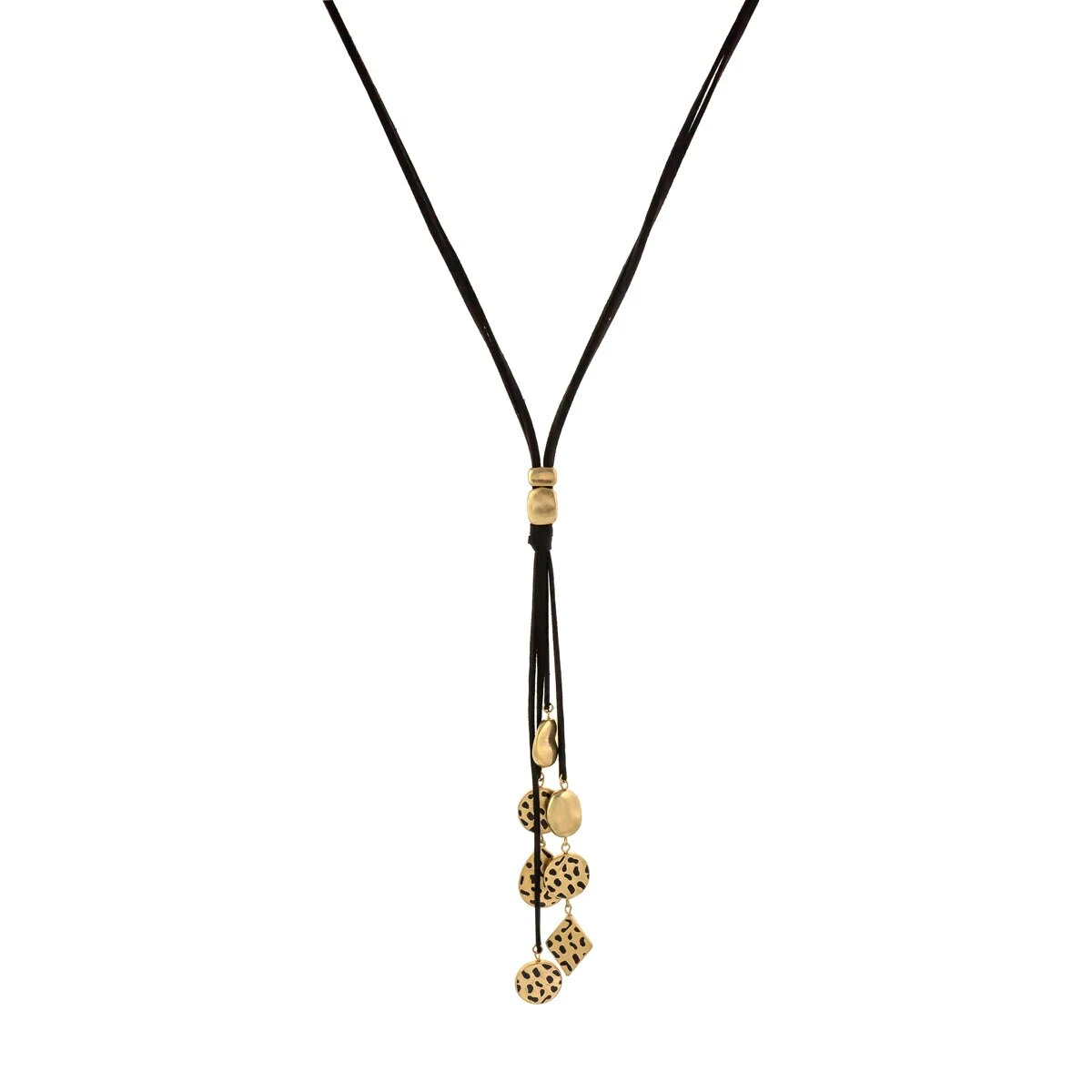 You’ll look stunning wearing this Ashley Cooper™ leopard disc tassel necklace with a long black cord. The necklace measures 28-inches in length with a 3-inch extender.