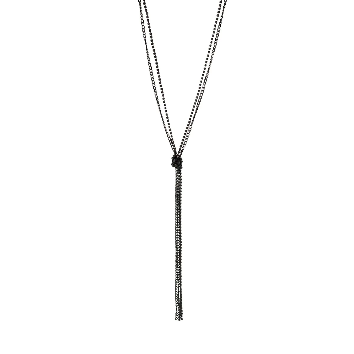 Give your everyday attire a touch of simplicity with the Ashley Cooper™ multi-row jet chain & rhinestone accent y-necklace. The necklace measures 24 inches with a 3-inch extender.