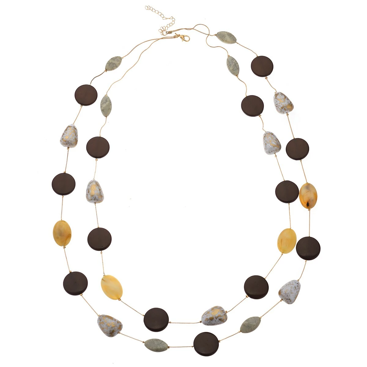 Elevate your style with the striking Ashley Cooper™ neutral two-row chain break beaded necklace.