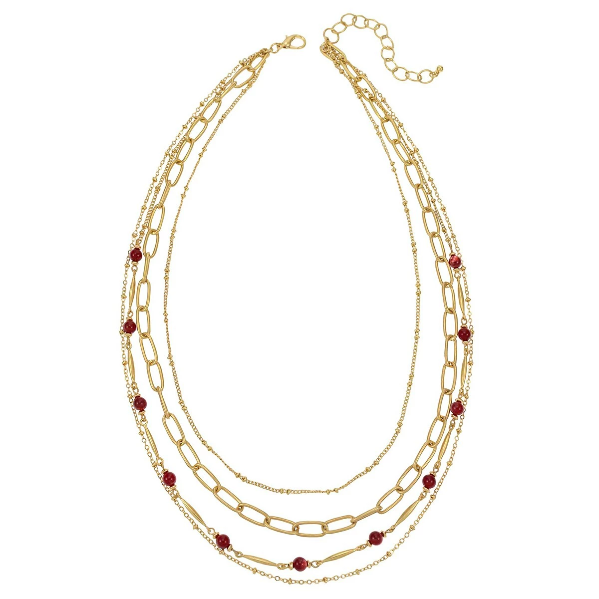 Elevate the appeal of any look with the refined style of the Ashley Cooper™ gold-tone short multi-row chain necklace with berry bead accents. The necklace measures 18 inches with a 3-inch extender.