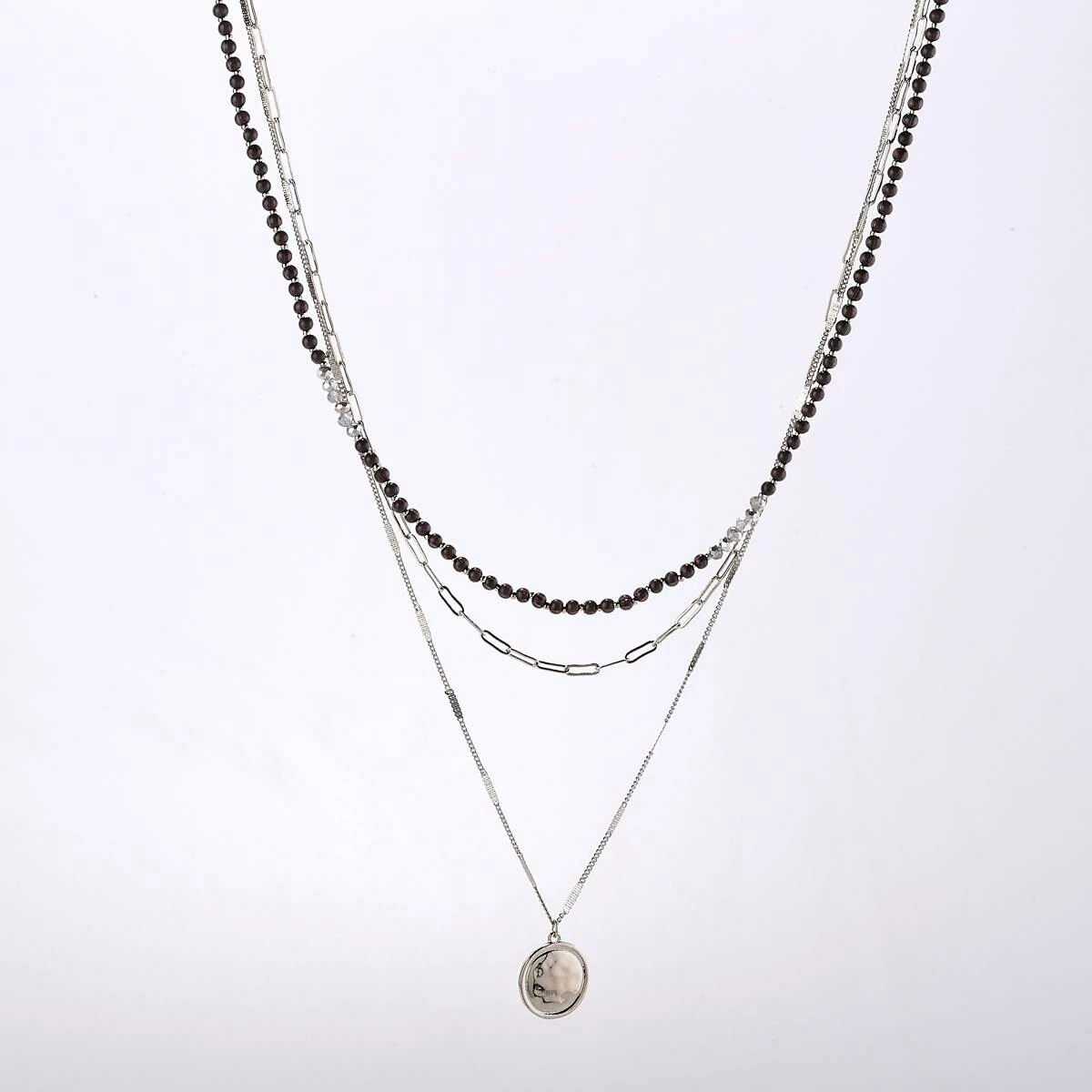The Ashley Cooper™ silver and black beaded 3-row necklace will become a staple in your wardrobe.