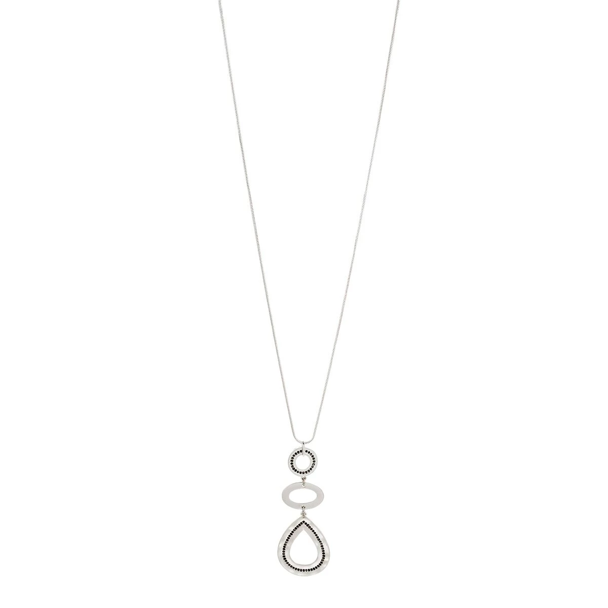 You are sure to adore the stylish look of the Ashley Cooper™ silver-tone long chain necklace triple mixed link pendant with hematite stone accents. The necklace measures 34 inches with a 3-inch extender.