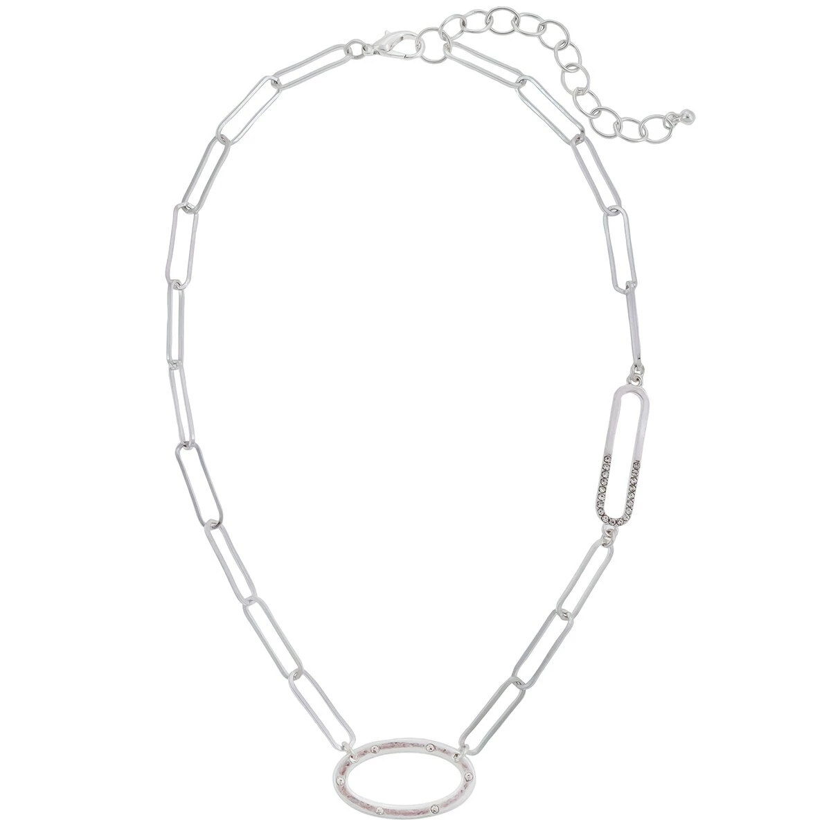 Step out in eye-catching style with the Ashley Cooper™ silver-tone short chain link necklace with crystal stone accents. The necklace measures 18 inches with a 3-inch extender.