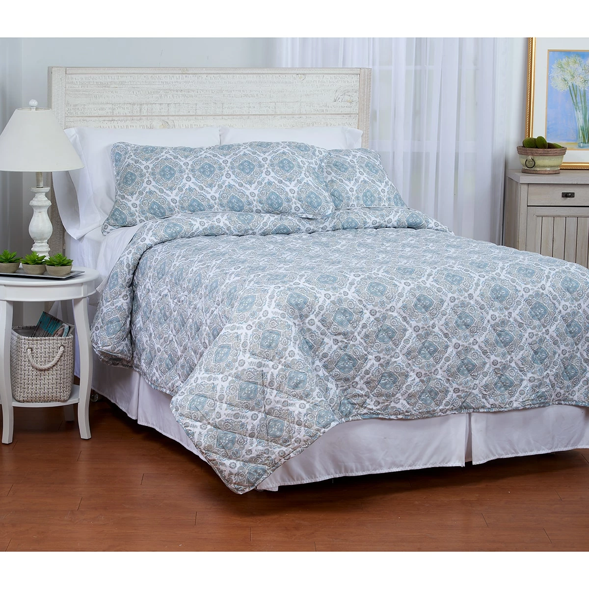 - King set included: (1) 108″ x 96″ quilt (1) bed skirt and (2) king size shams