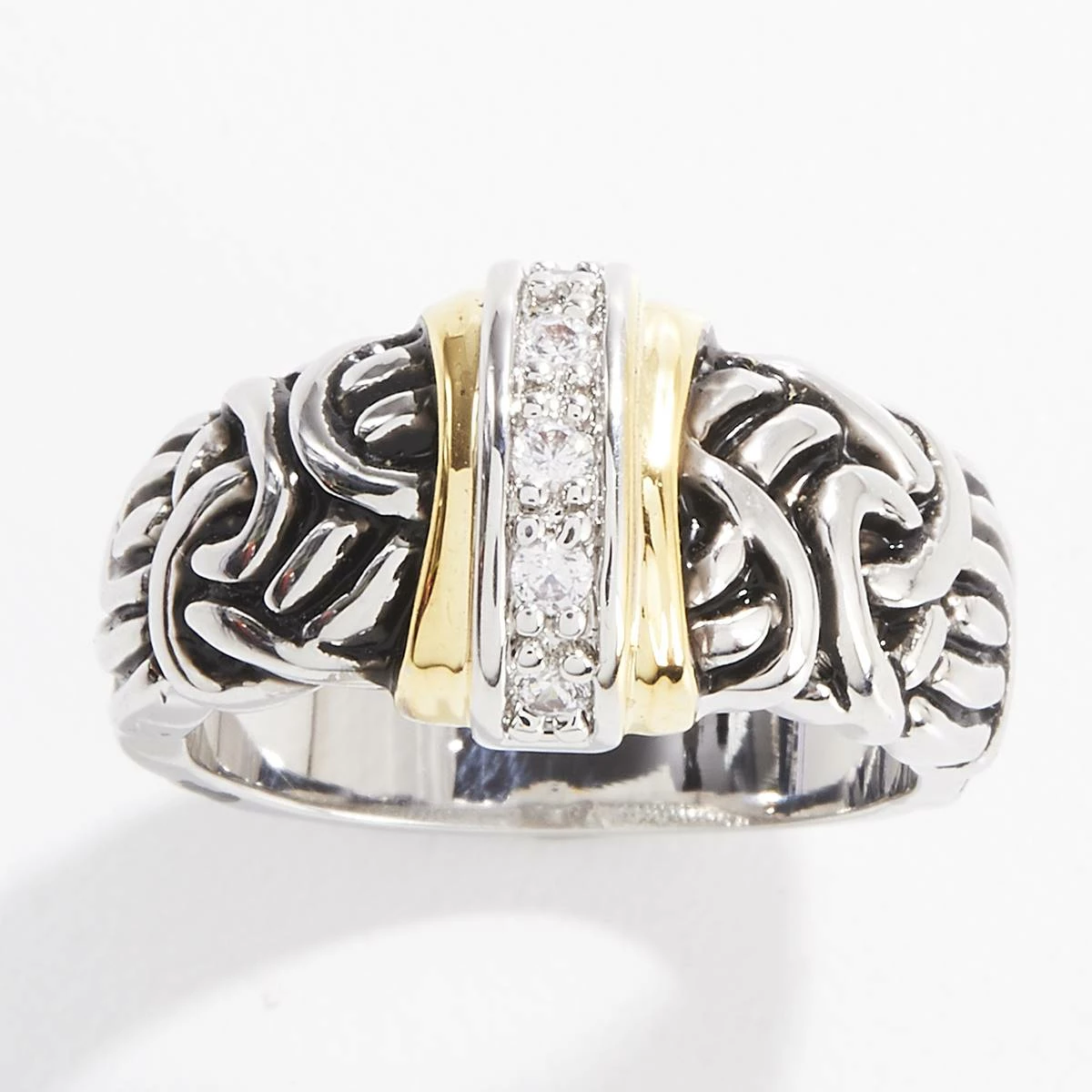 Refresh your jewelry style with this unique Ashley Cooper™ antiqued cubic zirconia two-tone ring.