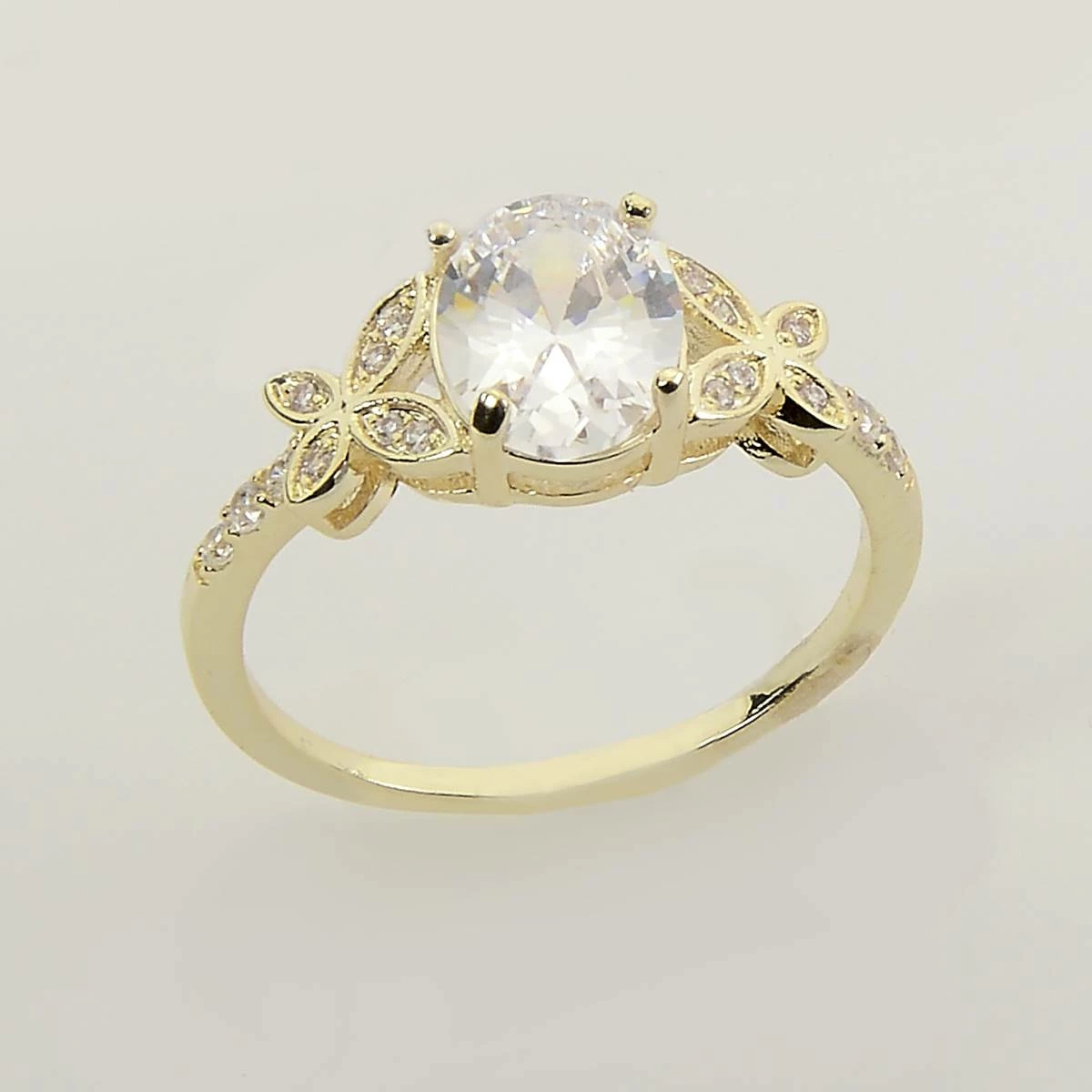 Step out in eye-catching style when you wear the Ashley Cooper™ gold ring with oval clear stone floral band and cubic zirconia.