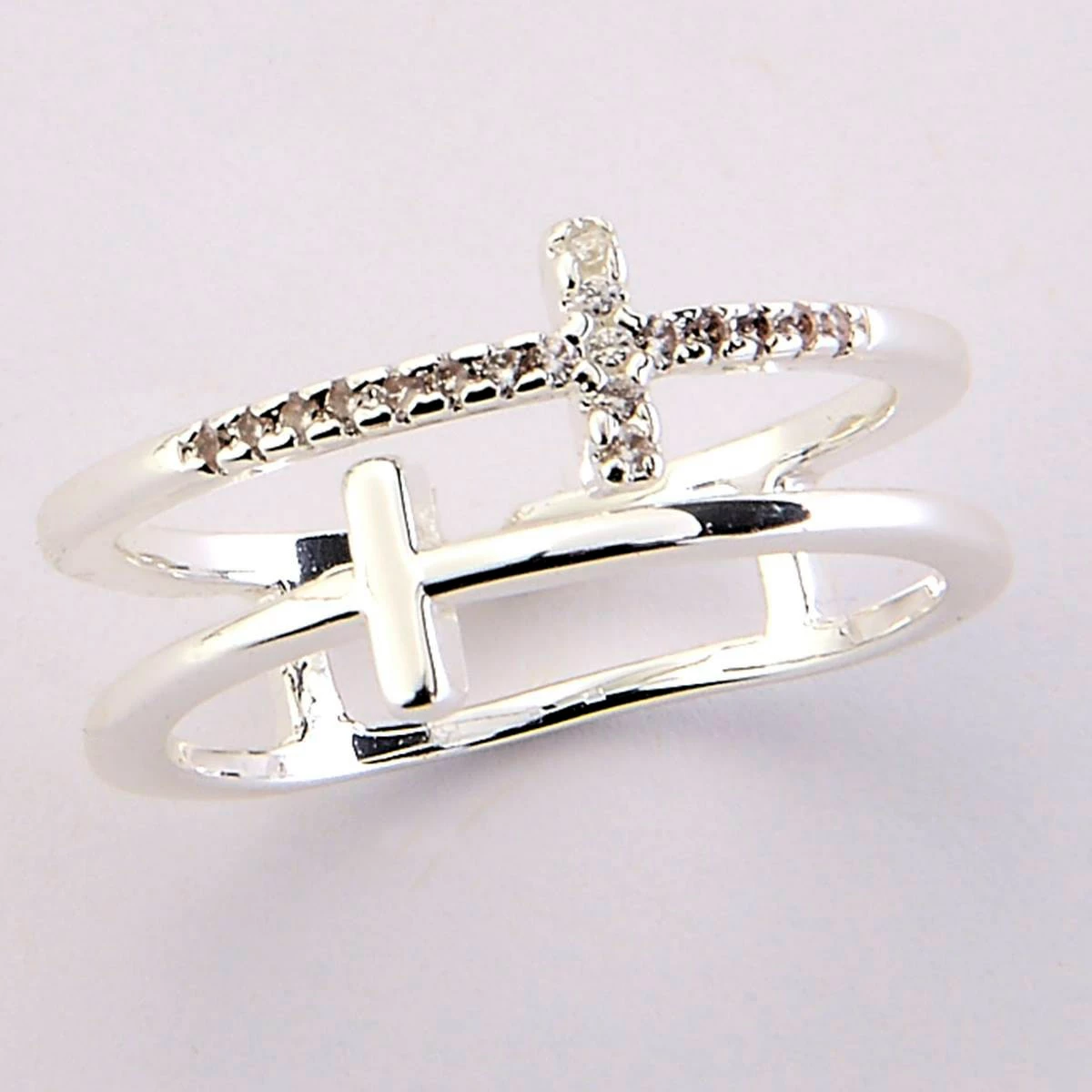 Add some sparkle to your day with the Ashley Cooper™ Silver cubic zirconia pave double cross ring.
